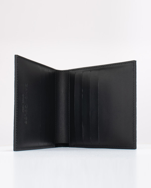 Denarnica je ročno izdelana iz kvalitetnega govejega usnja, z zrnato prešo in kombinacijo gladkega gov. usnja v notranjosti. Ima osem rež za kreditne kartice, dva predala po celotni dolžini za bankovce in dva večja skrita žepa za razne dokumente.